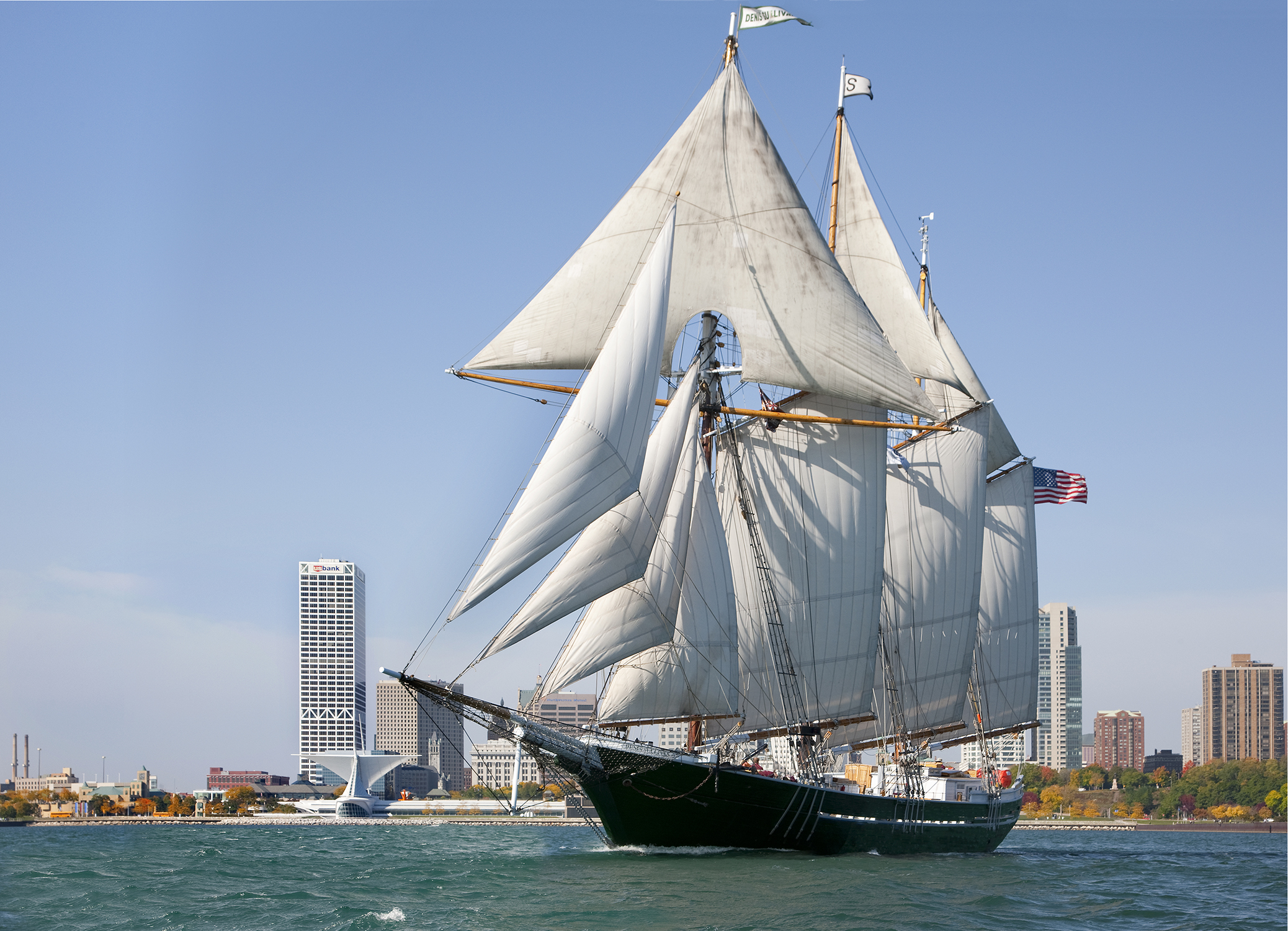 Over 900 volunteers completed Discovery World's tall ship, the Sailing Vessel Denis Sullivan. This replica of a Great Lakes schooner, and Flagship of Wisconsin, operates as a floating classroom and goodwill ambassador for the State of Wisconsin. From her homeport in Milwaukee on Lake Michigan, the S/V Denis Sullivan offers educational day sails and private charters for people of all ages from May through September and is committed to re-establishing the historical, cultural and environmental bonds between the community and one of its most valuable resources.