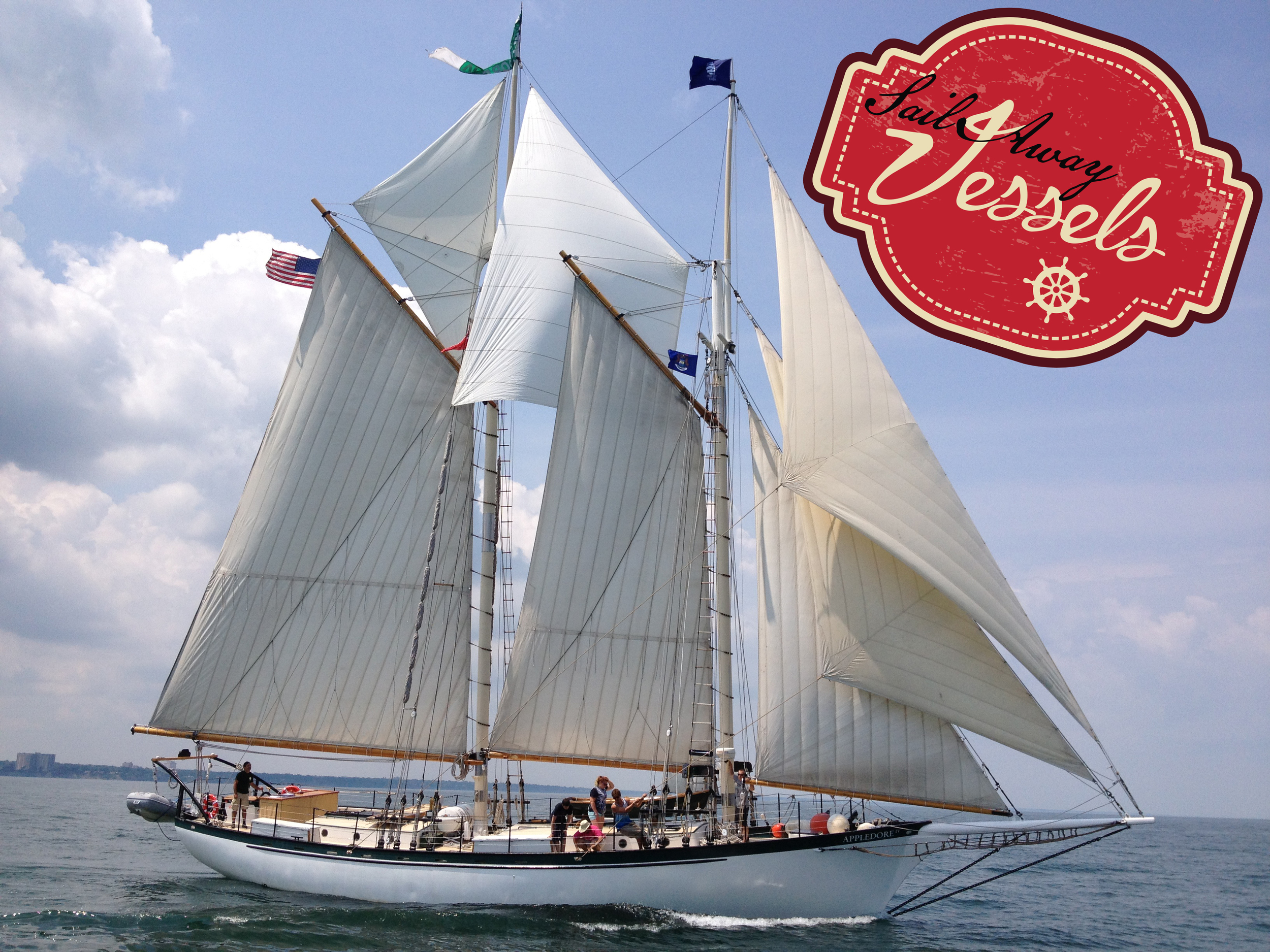 The schooner Appledore V is owned and operated by BaySail, a 501(c)3 non-profit organization based in Bay City, Michigan. Appledore V was the fifth in a series of Appledore schooners commissioned by Herb and Doris Smith and launched in 1992. Traverse Tall Ship Company purchased Appledore V from the Smiths and sailed her under the name Westwind. BaySail acquired the ship in 2002 and changed her name back to Appledore V. She joins sister ship Appledore IV as an education and sail training vessel operating around the Great Lakes.